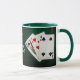 Jouer des cartes formant la combinaison de blackjack de vingt et un points. C'est la combinaison de carte d'arbre de reine, sept et quatre. Ils disent que le blackjack est le seul jeu de casino qu'un amateur peut vraiment gagner. Bonne chance à vous ! Tasse à café amusante. Personnalisable . Vous pouvez modifier l'image et vous pouvez modifier ou supprimer le texte modèle : 21 Joyeux Anniversaire! Peut servir de cadeau d'anniversaire de 21 ans. Amusez-vous bien !
