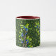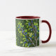 Branches d'épines noires avec baies bleues sur motif d'épine noire vert foncé.