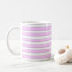 Un mug à café avec des rayures horizontales roses en rose clair, rose foncé et blanc. Personnalisez-le pour changer les couleurs de fond, choisissez vos polices et ajoutez du texte personnalisé et plus encore, même enregistrez votre design pour plus tard.