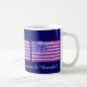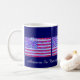 Tasse de café faite sur commande personnalisée tellement belle blanche de drapeau américain et bleue rouge de l'Amérique. Cliquez sur la PERSONNALISER CE bouton pour changer la couleur d'arrière - plan et/ou pour personnaliser ceci avec votre nom, initiales ou message d'amusement. Les lignes abstraites de fantaisie de cet art de drapeau des Etats-Unis donnent à la bannière ornée de paillettes par étoile une torsion presque affligée. Les rayures rouges et blanches de la vieille gloire représentent les 13 colonies originales tandis que les 50 étoiles représentent le nombre d'états. Les couleurs du drapeau ont la signification aussi bien. Le rouge symbolise la robustesse et la bravoure, blanc symbolise la pureté et l'innocence et le bleu représente la vigilance, la persévérance et la justice. Que ce soit le quatrième de l'affichage de juillet, de Jour de la Déclaration d'Indépendance, de Jour du Souvenir, de jour de vétéran ou de jour de collecte… la bannière étoilée americana de ce style et a laissé l'anneau de liberté.