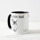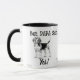 Mignonne Noir et Blanc" Mais PAPA A dit OUI! Mug. Notre charmant Ai a généré une tasse d'illustration, avec un dessin noir et blanc d'un Beagle debout avec un look "Mais PAPA". Cette conception audacieuse saisit la nature curieux et expressive du PUP, ce qui le rend parfait pour les AMOUREUX DE LES CHIENS qui apprécient les pièces uniques et artistiques, Profitez de vos aventures shopping! Artiste Tanya Arseneau Nanniesfineart