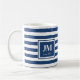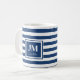 Mug Bleu et blanc Rayures nautiques Monogramme