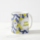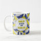 Cette équipe de volleyball colorent une tasse à café stylisée pour une entraîneuse femelle avec un bouquet de volleyball bleu, jaune et blanc arrangé dans un motif miroirs surdimensionné — les panneaux de volleyball bleu et jaune sont mélangés avec un motif kaléidoscopique floral pour un aspect féminin et artistique qui est encore sportif - customisez le nom de l'entraîneur sur un volleyball blanc un côté de la tasse et le nom de l'équipe, le nom de l'école et la saison sportive sur un graphique de volley-ball de l'autre côté - par katz_d_zynes | Les couleurs de l'équipe de volley-ball des filles les cadeaux de cadeaux de l'équipe de volley-ball des couleurs de l'école de volley >> https://www.zazzle.com/collections/119253642051968072