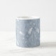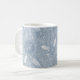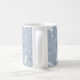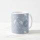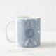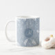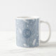 Cette tasse à café motif cachemire présente des plumes dessinées à la main, des fleurs et des paislies en blanc sur un arrière - plan bleu poussiéreux aux accents bleu clair et foncé - personnalisez avec son monogramme - par katz_d_zynes