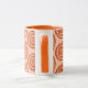 Mug dans un motif imprimé en bloc, basé sur un coquillage en spirale, en orange corail profond sur un arrière - plan pastel corail orange / abricot