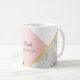 Un motif de marbre noir élégant et un bloc rose de couleur encadrés avec la tasse d'or de faux que vous pouvez personnaliser en ajoutant votre nom. Image imprimée d'appartement, or non métallique.