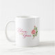 A white cup with an elegant design bearing the phrase 'Bloom with Grace', adorned with a delicate rose illustration that adds a touch of beauty and tranquility. Its simple design reflects elegance and sophistication, making every sip of coffee or tea a moment full of inspiration. An ideal choice for lovers of subtle taste, or as a gift that expresses optimism, growth, and gentleness.