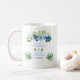 This beautiful and elegant wedding mug features watercolor baby blue and navy blue flowers with foliage. The text combines handwritten script and serif fonts for a stylish and modern look. This is perfect for a spring or summer rustic wedding.