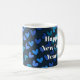 Votre chien dans une photo encadrée sur une tasse de café bleue pleine de coeurs dans les tons bleus. Bonne année de chien !