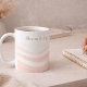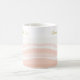 Feminine minimalist design on a white base, featuring blush ripple accents wrapping the lower portion and gold serif text near the rim reading “Bloom & Sip.” This piece fits morning coffee, desk breaks, or kitchen shelves where soft neutrals and clean detail define daily routines.