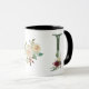 Cette tasse à café monogramme floral boho est si jolie avec la lettre J des deux côtés de la tasse et un bouquet de fleurs entre chaque lettre.