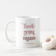 Cette tasse boho et élégante dit "love you mum" dans une typographie tendance boho et rétro, dans des nuances dégradées de rose et de rose foncé. Le cadeau idéal pour la fête des mères ou à tout moment !