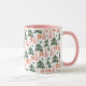 Une tasse de Noël boho amusante avec des arbres de Noël rose orange et vert. Vous pouvez changer la couleur de la poignée et de l'intérieur en vert, ou une autre couleur si vous le souhaitez.