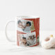 Accueillez vos amis et vos proches pour des vacances de paix, de joie et de bonheur avec cette tasse de Noël boho élégante et moderne en terre cuite avec quatre belles photos de votre famille dans un collage insolite orné de pins aquarellés à la main. (Les photos de placement sont de Pexels photographiés par Ketut Subiyanto et pour échantillon seulement. Veuillez le remplacer par le vôtre.)