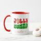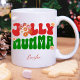 Typographie super rétro tasse de café script personnalisable pour mams. Le design présente le texte "Jolly Mumma" en typographie super rétro rouge et verte avec de jolies fleurs sur le thème du boho. Le nom peut être facilement customisé. Faites pour le meilleur cadeau personnalisé pour vous-même, vos amis, les membres de votre famille et même les voisins. Nous avons plus de 45 tasses de Noël en design rétro, aquarelle et drôle de typographie dans notre collection que vous aimerez certainement. Joyeux Noël!