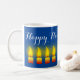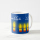 Symbolisez le miracle d'Hanoukka : Notre design présente les neuf bougies, symbolisant le miracle de Hanoukka. Les flammes vives posées contre le bleu roi profond sont une représentation visuelle de la joie et de la lumière que cette fête apporte. Huit bougies symbolisent le nombre de jours que la lanterne du Temple a allumé ; la neuvième, le shamash, est une bougie d'aide utilisée pour éclairer les autres. Customisez la tasse avec l'année en cours.