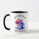 Jolie tasse de thé chinois bleu de fleurs roses avec la citation, "Passez une belle journée aujourd'hui et chaque jour." "