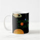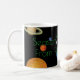 Cette tasse a une image de planètes lumineuses dans l'espace et les mots "Bonnes Fêtes de la terre planeuse". Les planètes sont des dessins originaux de Mozartini et sont également disponibles sous forme de murs, de plancher et de vignettes pour vous permettre de faire vos propres arrangements planétaires dramatiques.