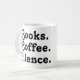 This phrase is more than a mood — it’s a sacred ritual. Whether it’s printed on a mug, journal, tote, or t-shirt, “Books. Coffee. Silence.” speaks to the soul who cherishes their peace, protects their solitude, and finds magic in the quiet moments.