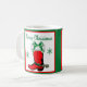 Botte de cowboy rouge avec arc et Joyeux texte de Noël en police de corde. Tasse de vacances ou tasse