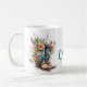 Mug à thème occidental, avec de jolies oeuvres d'une paire de bottes et de fleurs de cowgirl colorées. Le texte personnalisé turquoise lit Cowgirl, et peut être personnalisé pour lire ce que vous voulez. Super idée cadeau pour elle.
