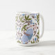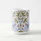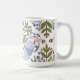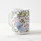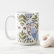 Cette tasse en céramique présente un motif dessiné à la main d'un papillon délicat et des motifs floraux dans de belles teintes bleu maïs et vert olive.