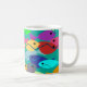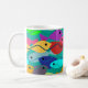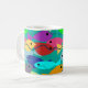 Cette tasse a un design d'école de poissons en vert, bleu, orange, jaune, rouge, rose et bleu-vert nageant dans l'océan.