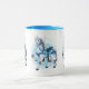 J'aime les carrousels depuis mon enfance. Les magnifiques dessins des animaux et la musique des carrousels installés dans les foires et les parcs occupent une place particulière dans mon coeur. Cela m'a inspiré à dessiner des chevaux de carrousel de ma propre façon, puis à les colorer avec de l'encre acrylique. L'aquarelle d'un cheval gris décoré en bleu apparaissant sur cette tasse est l'un des résultats.