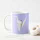 Photo d'une grue de papier blanc pliée sur couleur arrière - plan personnalisable. Image imprimée des deux côtés de la tasse.