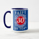 Tasse à 30 ans. Couleurs vives et design audacieux. Tasse d'anniversaire numérotée. Le design se répète de part et d'autre. 30 ans.