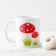 Un champignon rouge en forme de toadstool illustre une tasse.
