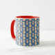Une tasse à café bleue avec des chiens jaunes sucrés portant leur propre bandana. Un cadeau parfait pour un amoureux des chiens.