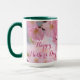 Personnalisez et donnez à votre Mère cette "Mug de la Fête des Mères de l'Un des Genres" unique ! Il présente de belles grandes fleurs de cerises roses et blanches avec les mots..."Bonne fête des mères"! Design Original De L'Artiste Kerry Miller.