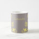 Boug floral à papillon doux et appétissant avec un arrière - plan gris poussiéreux et muet, papillons jaune clair et ornements de vigne fleurie. Cette tasse florale élégante est parfaite pour boire votre boisson chaude préférée avec une touche de flair girly. Facile à customiser, ajoutez simplement le texte personnalisé de votre choix dans les champs de texte fournis. Cliquez sur le bouton "Customiser" pour trouver d'autres options de personnalisation.