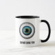 Blue Eye Iris © Sunny Mars Designs. Cool, amusant imprimé sur mesure leu eyeball nouveauté mug avec une tendance, moderne, belle, unique, monstre, déplaisant, bizarre et tordu illustration graphique d'un grand bleu réaliste eyeball iris d'un oeil. D'autres modèles de lunettes de couleur sont également disponibles en magasin.
