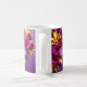 Un mug vibrant pour la Fête des Mères enveloppé dans un bouquet luxuriant de roses violettes, de lys jaunes et de fleurs joyeuses, le tout sur un fond violet riche. Fini avec une écriture dorée élégante, ce design sincère rend chaque gorgée comme une célébration de l'amour et de la beauté de Maman.