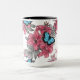 Bouquet dessiné à la main de fleurs tropicales, feuilles de palmiers et papillons