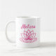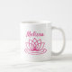 Tasse à café de nom personnalisé avec fleur de lotus rose. Coupe personnalisée de 11oz pour lui. Design élégant du logo floral. Idée cadeau d'anniversaire mignonne pour instructeur de yoga, professeur d'école, entraîneur de fitness, expert en méditation, fan de pleine conscience, entraîneur, personne spirituelle, amis, famille, épouse mariage, collègue, collègue, patron et plus encore. Design d'icônes paisible en couleur personnalisable. Impression recto verso.