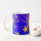 Un feu d'artifice explosant sous une pluie d'étoiles dorées et roses éblouissantes contre un ciel bleu. Mug avec un design personnalisable jaune, rose, bleu et blanc pour vous permettre de personnaliser avec votre propre texte, photos et idées. Disponible dans toutes les options de style. Créé à l'aide de photographies originales et de techniques numériques de Jess Perry.