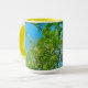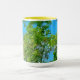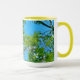 Cette tasse Motif Feuille Vert Printemps bleu ciel éclaire votre matin avec la palette de couleurs vert et bleu brillant de la nature