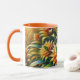 Mug Bouteille orange avec fleurs jaune et vert