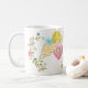 La tasse super mignonne comporte un ange sur des couronnes florales qui saisit une photo en forme de coeur. Qui m'amène maman ? Et mon ange, ma chère !