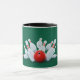 A colorful and distinctive coffee mug for anyone who loves bowling. The design features a bowling ball at the moment it collides with the pins. Strike! The image is placed on a dark green background. Personalize with a name. The text is easily changed by using the template. If other changes are desired (different type font, color, size, or placement) select "Personalize this template" then select "Edit using Design Tool." You can also use the Design Tool to resize, rearrange or remove the bowling image OR to select a completely different background color. Other mug styles are available. Be sure to check out all options on right. You may also want to scroll down to the section "Transfer design to a product" for a few suggestions about other items this design can be used on. Note: it will probably be necessary to use the Design Tool to make the design fit properly on different new products.
