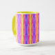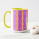 Motif tissé dans les tons pastel clairs (rose, bleu, jaune). Le motif kaléidoscopique ressemble à une peau de serpent, avec ses formes de chevrons convergentes. Le jaune vif divise le motif en bandes.