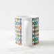 Cette tasse a une conception Bauhaus d'ovales quatre couches d'épaisseur sur un champ de blanc. Voulez-vous le même design avec des couleurs différentes? Message-moi.
