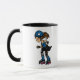 Une bande dessinée numérique impressionnante d'un bleu de port de fille de rouleau, jouant la position de brouilleur comme elle déchire autour de la voie. Ses longs cheveux coulent derrière elle comme ses roues roses sur ses quadskates tournent. Il y a l'espace pour que vous ajoutiez votre nom et nombre de Derby