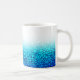 Des bulles dans divers bleus mouillent du fond de cette tasse.