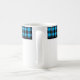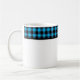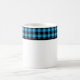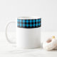 This ceramic coffee mug is shown with a lovely black and blue color buffalo plaid.