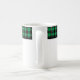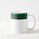 This ceramic coffee mug is shown with a lovely black and green color buffalo plaid.