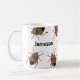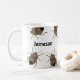 Créez le cadeau parfait pour quelqu'un qui aime les insectes ou un drôle de cadeau de bâillon pour quelqu'un qui déteste les insectes puants. Cette tasse présente des illustrations de style réaliste de bogues puants marmorés brun qui pourraient grossir les buveurs de café. Il est prêt à être personnalisé avec un nom en lettres noires en gras. Le nom apparaît des deux côtés de la tasse.